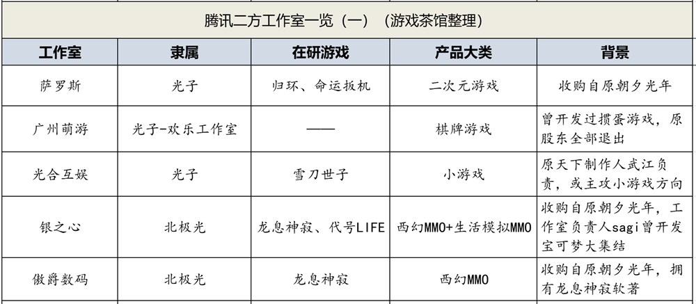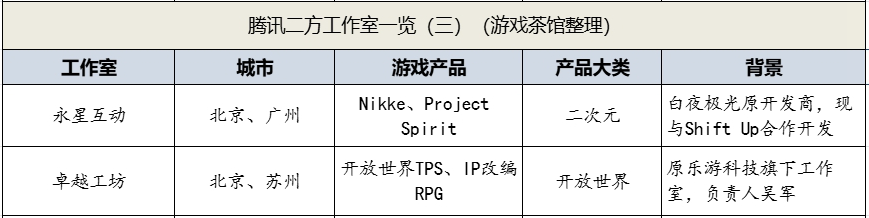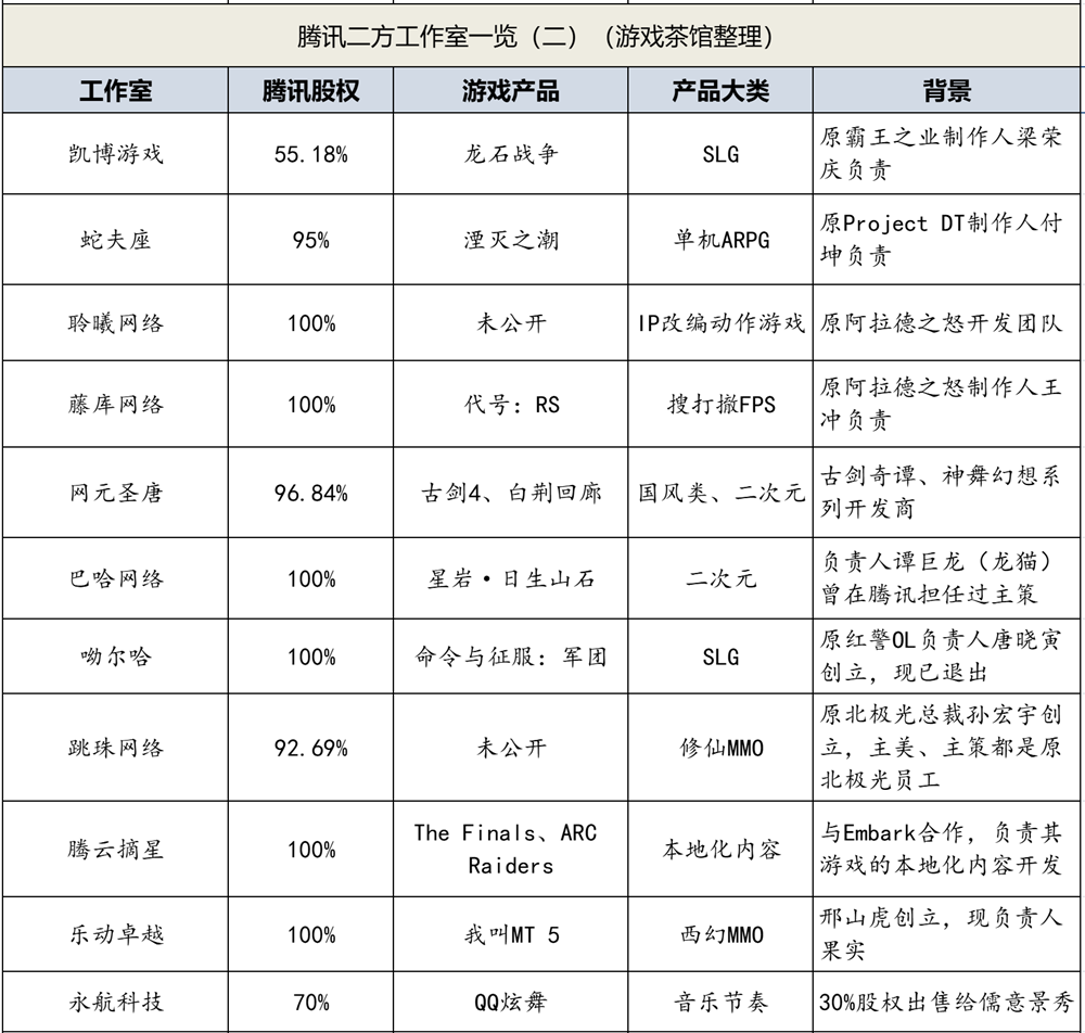类似腾讯凯博这样的第二方工作室,近些年腾讯网罗了不少。